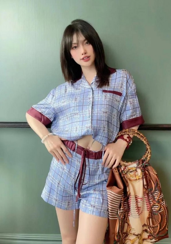 - 12230057 polka dot short sleeve silk