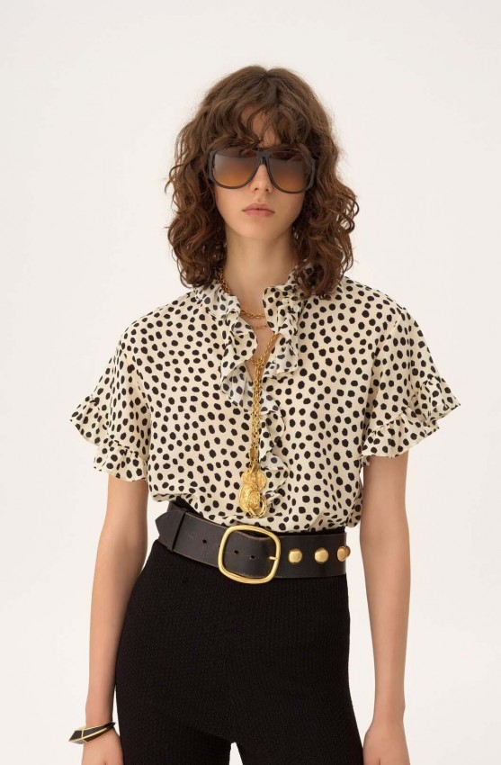 - 12230057 polka dot short sleeve silk