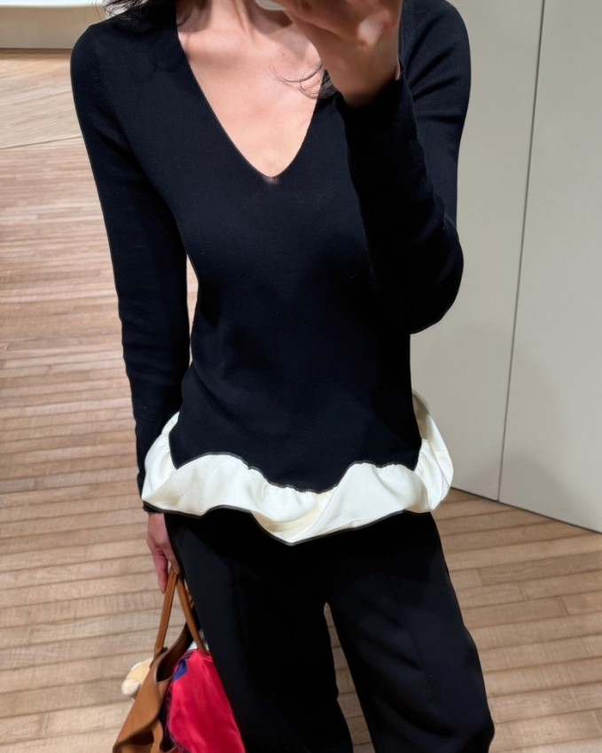 - 12230013 hem ruffle v-neck top